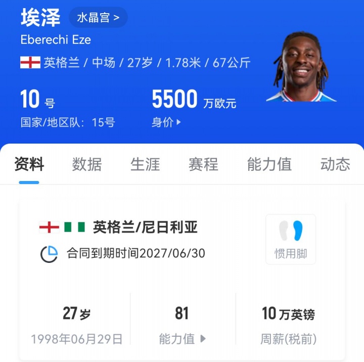 此前,水晶宫队内的其他几位球星今夏也得到了来自豪门的关注:后卫/球队队长格伊合同只剩一年,他进入了利物浦补强后卫的引援名单;攻击手埃泽夏窗早些时候曾接近加盟阿森纳,而有报道称目前他正推动自己前往热刺的转会。