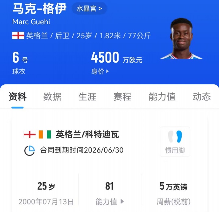 中轴线危险!水晶宫身价最高3人均被豪门盯上:格伊、沃顿、埃泽